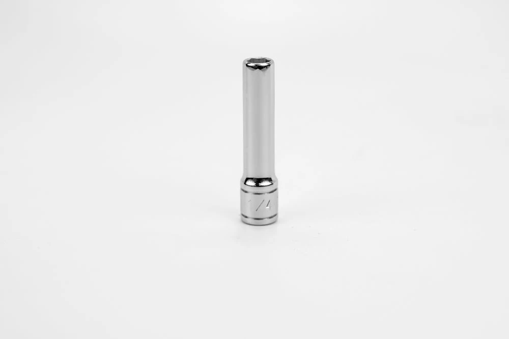 - 1/4″ 1/4″ Drive 6 Point Fractional Deep Chrome Socket