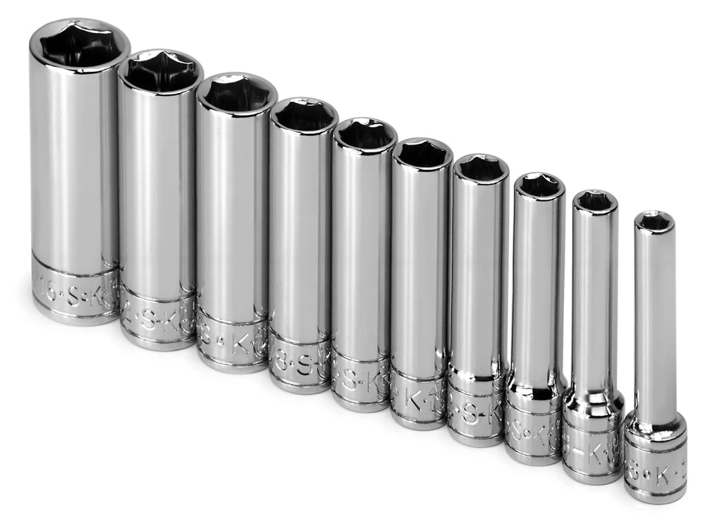 - SK’s high polish SuperKrome® finish protects the sockets from the harsh working environments while providing long life and maximum corrosion resistance