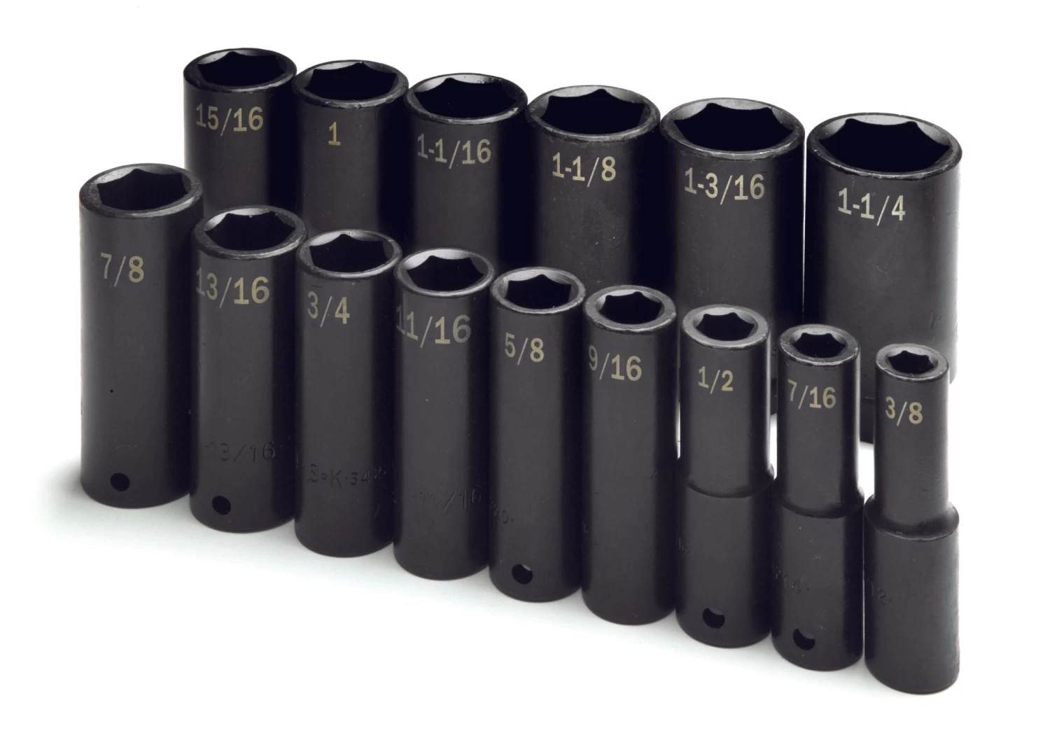 15 Piece 1/2″ Drive 6 Point Fractional Deep Impact Socket Set