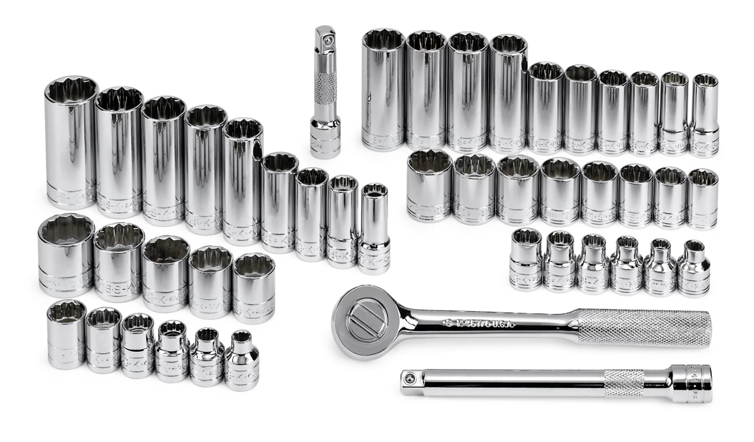 47 Piece 3/8″ Drive 12 Pt Std And Deep SAE And Metric Socket Set